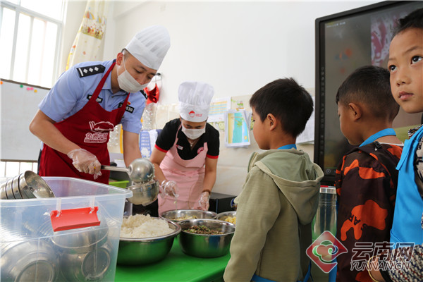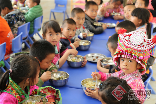 “民警们看在眼里急在心里。”经过多方努力,该支队于2018年9月促成旨在解决边远贫困地区学校师生中午就餐难题的免费午餐项目与马关实现全面合作。为帮助学校成功申请该项目,支队民警按照项目要求为符合要求学校建立专属的新浪微博,并指导学校进行项目申报,督促学校定期更新师生的伙食标准和经费使用等各项数据,协调项目后续工作的落实。此次开餐仪式的成功举行,标志着马关县成为全国第五个免费午餐全县推广县,填补国家营养改善计划空缺,为学前班、幼儿园师生提供免费午餐及厨师工资保障。