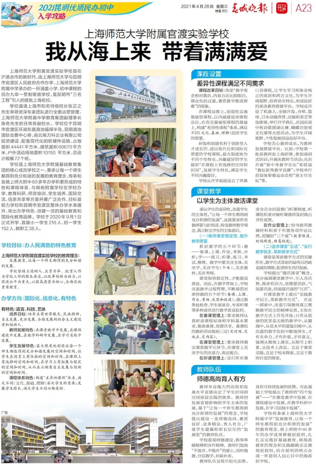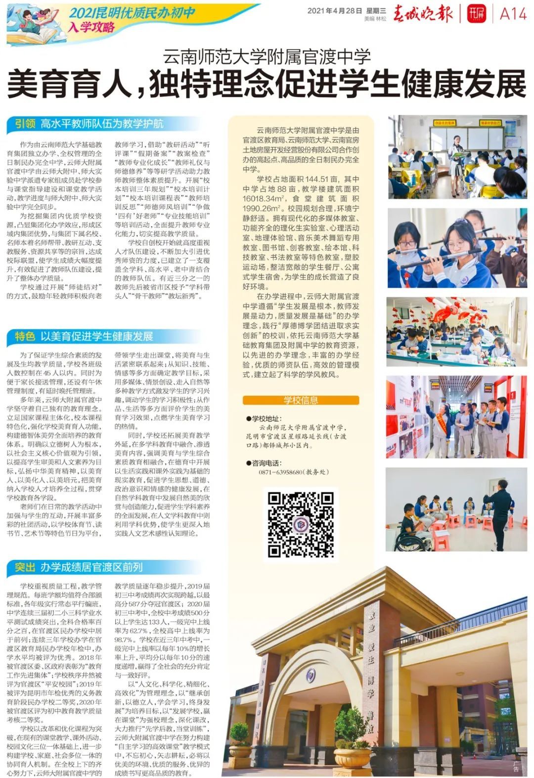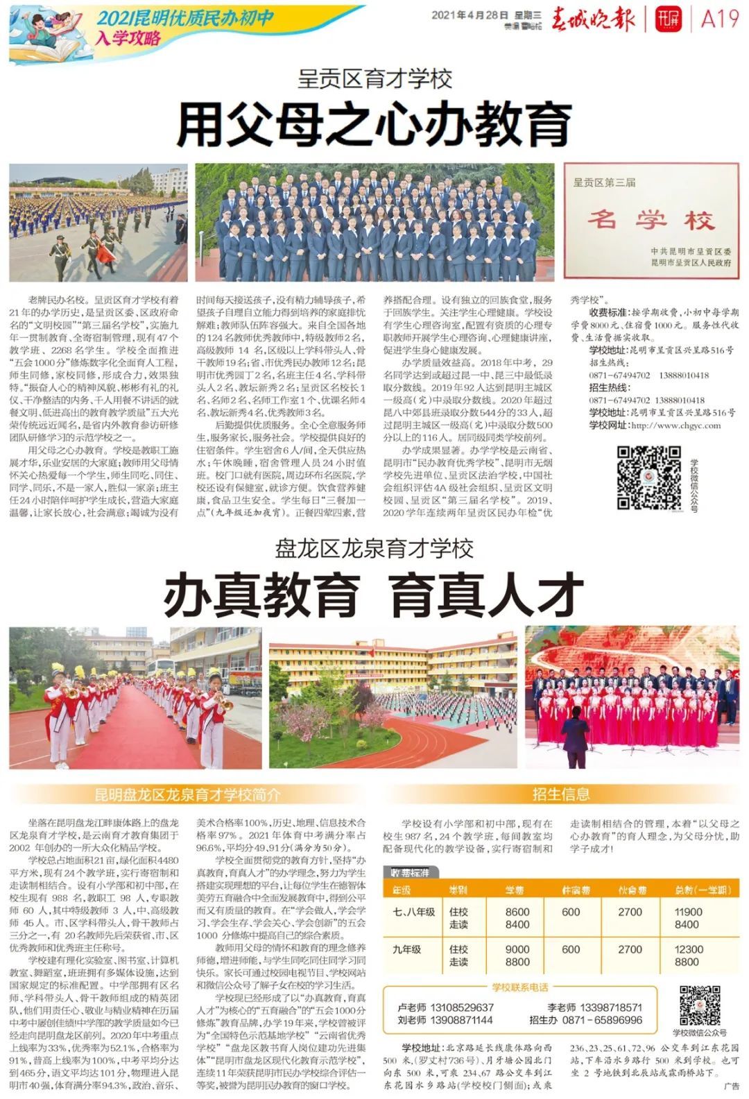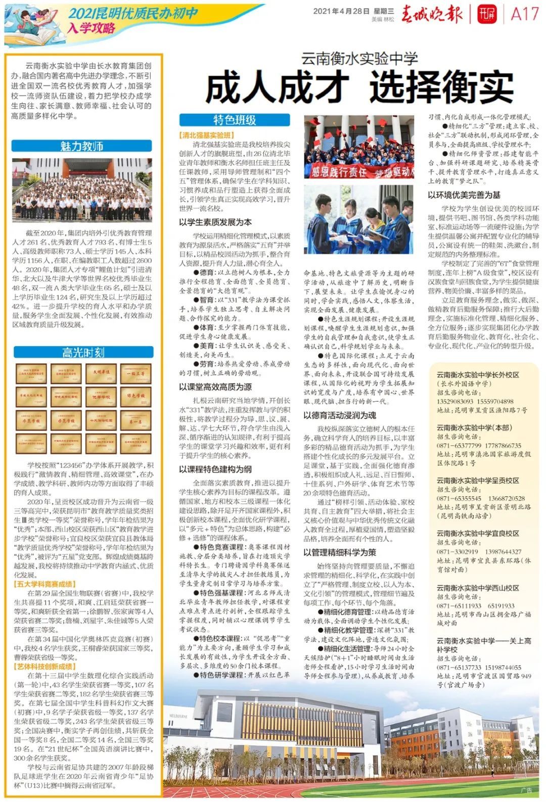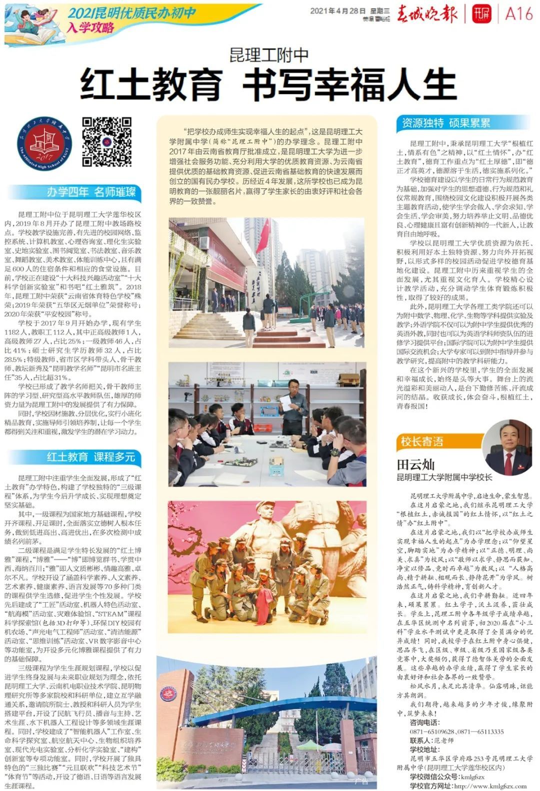 为了给广大家长提供参考,今天,本报独家推出《2021昆明优质民办初中入学攻略》,集中展示昆明各优质民办初中,并深度揭秘各校办学亮点,为家长推荐身边的好学校。这已是本报连续六年推出《昆明优质民办初中入学攻略》,深受家长信赖,广受各界好评。