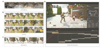 团队随后开发了名为“世界与人类行动模型”(WHAM)的AI模型。该模型使用了一个3D多玩家战斗模拟器中的人类玩家体验进行训练。团队发现,WHAM或能设计出符合预存在机制的复杂3D电子游戏序列,其关卡设计具有明显的多样性,且创意人员可对输出进行迭代调整。