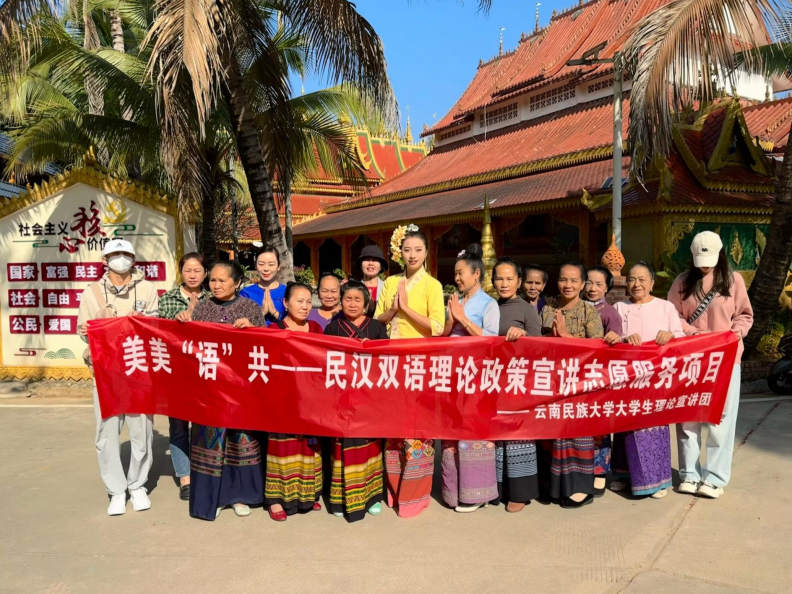 云南民族大学“民汉双语理论政策宣讲”项目自2016年以来持续实施,师生深入边境村寨,开展以普通话和当地少数民族语言为特色的理论宣讲,推动党的创新理论飞入寻常百姓家,铸牢中华民族共同体意识,活动覆盖云南16个州市,当地10万余名群众受益。