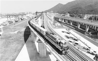 浙江海港义乌枢纽港有限公司总经理赵建民介绍,苏溪集装箱办理站联通义乌与宁波舟山港,通过铁路实现陆港与海港无缝衔接,将全程运输服务向内陆延伸,推动港口、海关、船务功能前移。货物在此“一次申报、一次查验、一次放行”,进入该站相当于进入宁波舟山港。