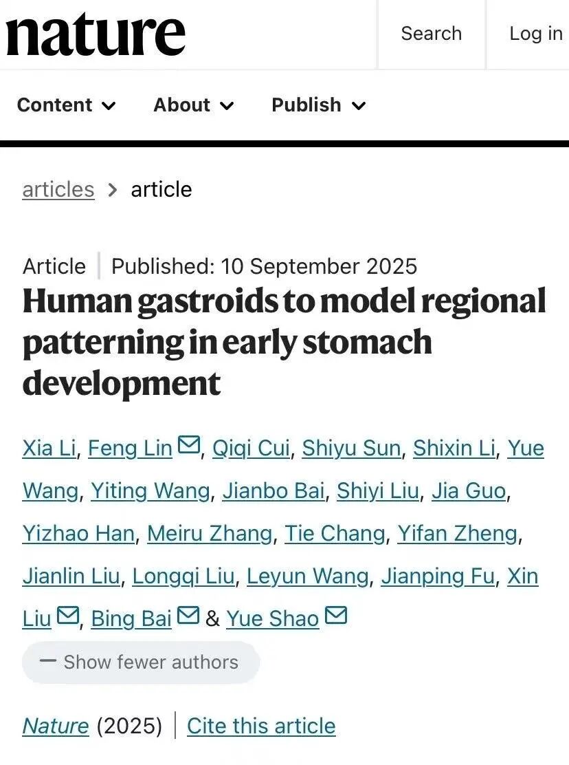 9月10日,昆明理工大学灵长类转化医学研究院白冰老师与国内外团队合作的最新研究成果,以“人类胃器官模拟早期胃发育的区域图式形成”(Human gastroids to model regional patterning in early stomach development)为题,发表于《Nature》。