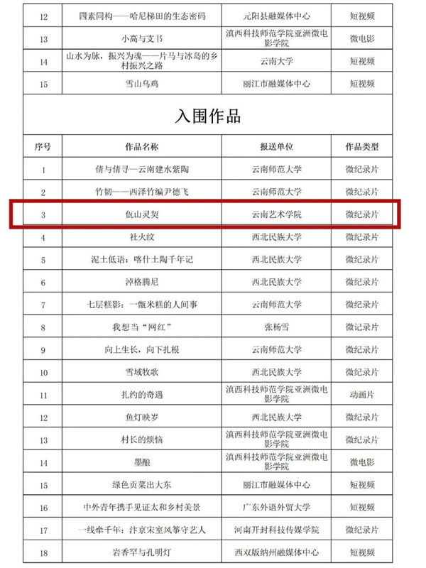 本次活动聚焦“乡村文化振兴”题材,作品涵盖短视频、微纪录片、微电影、短剧、动画等多种形式,展示文明乡风、农耕文明及农村地区历史人文、非遗传承、民族风情、乡村旅游等生动实践、显著成效和宝贵经验。云南艺术学院师生紧扣时代脉搏,深入乡村一线,用艺术赋能乡村振兴,创作出一批兼具思想性与艺术性的佳作。据了解,近年来,该校持续深化校地合作,鼓励师生将艺术专业优势转化为助力乡村振兴的持久动能。未来,云南艺术学院将全面落实好定点帮扶工作相关要求,进一步发挥专业优势,坚持以人民为中心的创作导向,履行好高校服务社会职能,为巩固拓展脱贫攻坚成果同乡村振兴有效衔接作出更大贡献。
