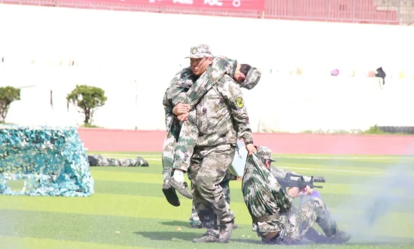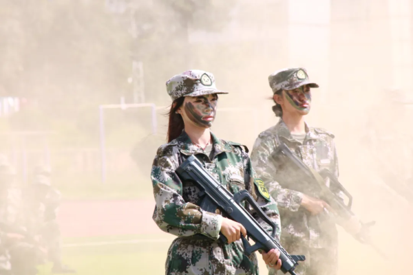 军训总教官下达口令,标兵就位,分列式正式开始。各参训连队有序入场,嘹亮口号响彻云霄,整齐步伐铿锵有力,新生们以挺拔身姿展现顽强拼搏的精神风貌,尽显朝气蓬勃与昂扬斗志。在随后的技能展示环节中,新生们以昂扬姿态呈现多项训练成果。
