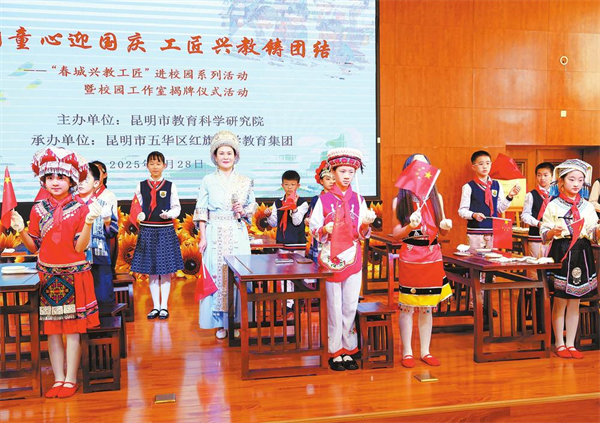 近日,“茶润童心迎国庆 工匠兴教铸团结”主题活动在五华区红旗小学教育集团布新校区举行。作为“春城兴教工匠”进校园系列活动的第十六场,此次活动不仅为师生带来了丰富的茶文化体验,更推动春城兴教工匠李冬惠(茶艺)校园工作室落户该校,为学校劳动教育与传统文化传承提供新平台。