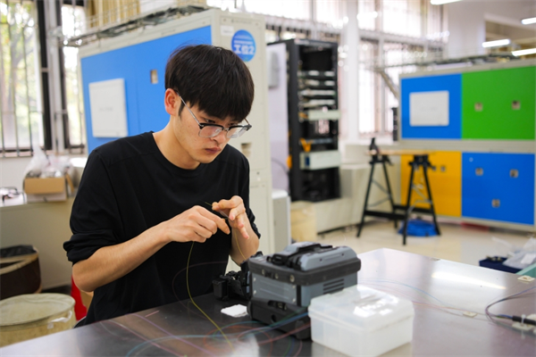 “在此次比赛中,最为紧张的时刻莫过于整条光纤链路铺设完毕后进行的福禄克认证测试。与平日训练不同的是,此次使用了新的熔接机,无法完全确保能否满足认证测试的标准。在接通测试仪的那一刻,内心依然感到忐忑不安。”蒋忠何坦言,国赛的舞台上他能及时调整心态寻求解决方案,这源于赛前漫长的训练过程所积累的备赛经验。
