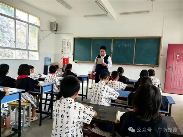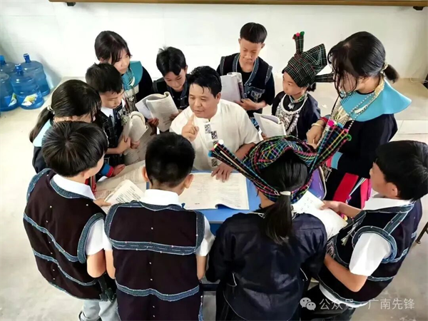 有了多年的实践经验,王家华认为学校管理、教学工作都可以成为教学研究的课题。针对六郎小学学生都是少数民族,学习汉语有困难的实际,他组织实施了“壮汉双语”“师亲一肩”教学模式,让低年级学生在生活中学会“壮汉双语”并用,让留守儿童在快乐中获得知识。王家华还组织老师们进行研讨,教会他们少数民族日常用语,以确保教学模式的顺利实施。