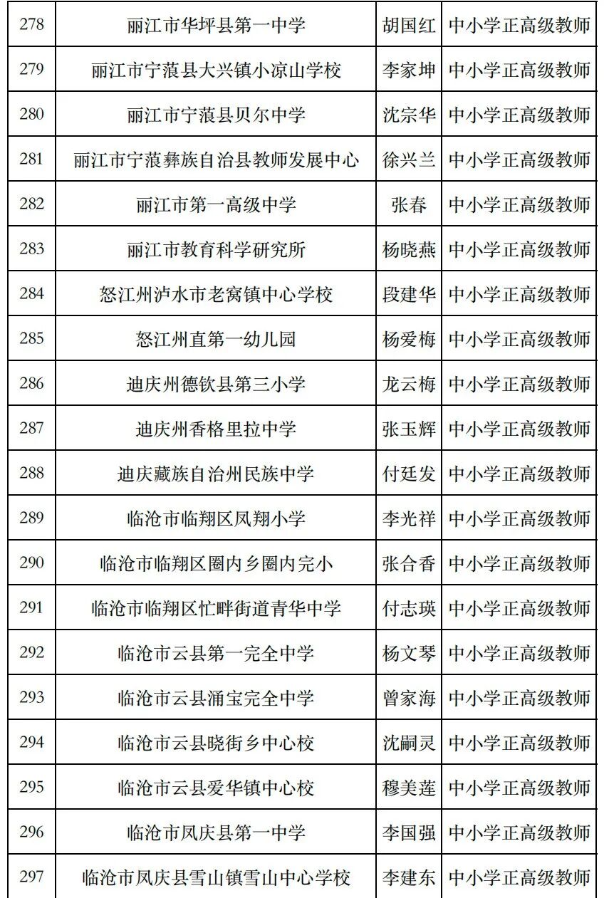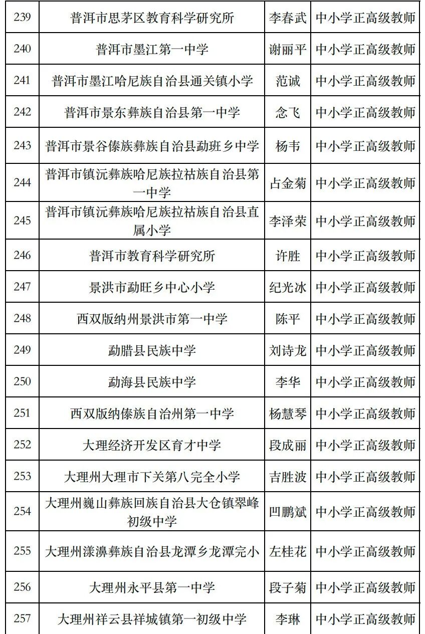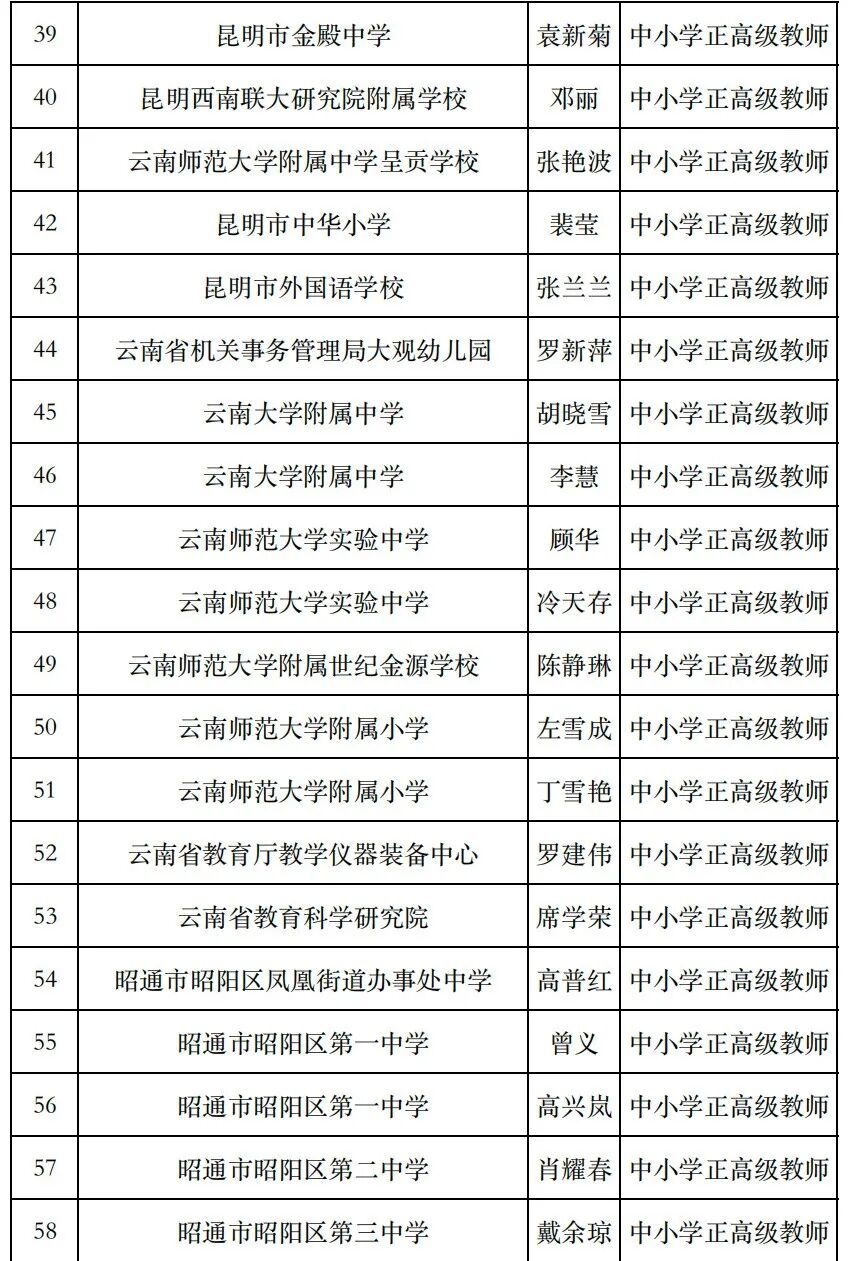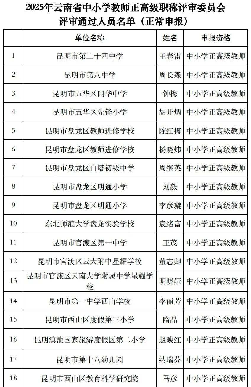 2025年云南省中小学教师正高级职称评审委员会评审通过人员名单公示