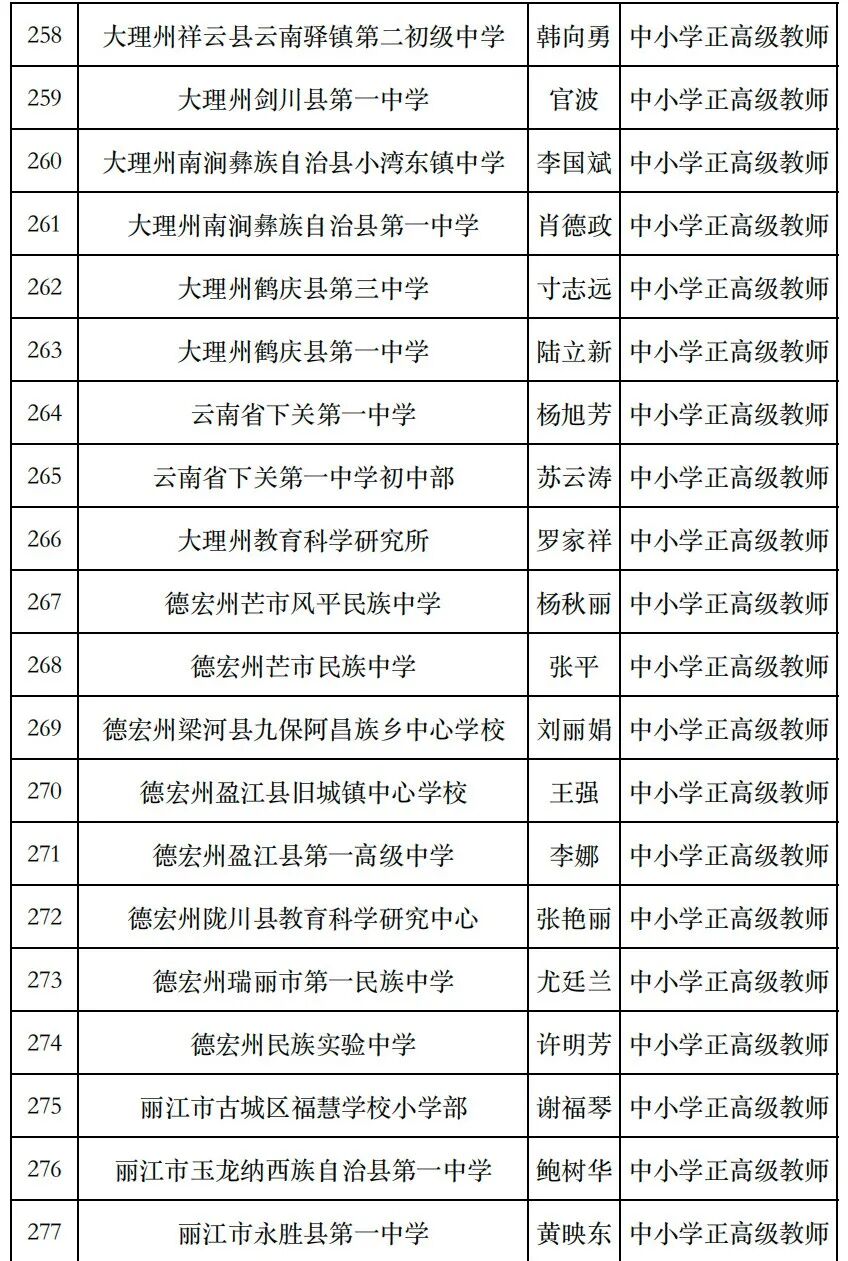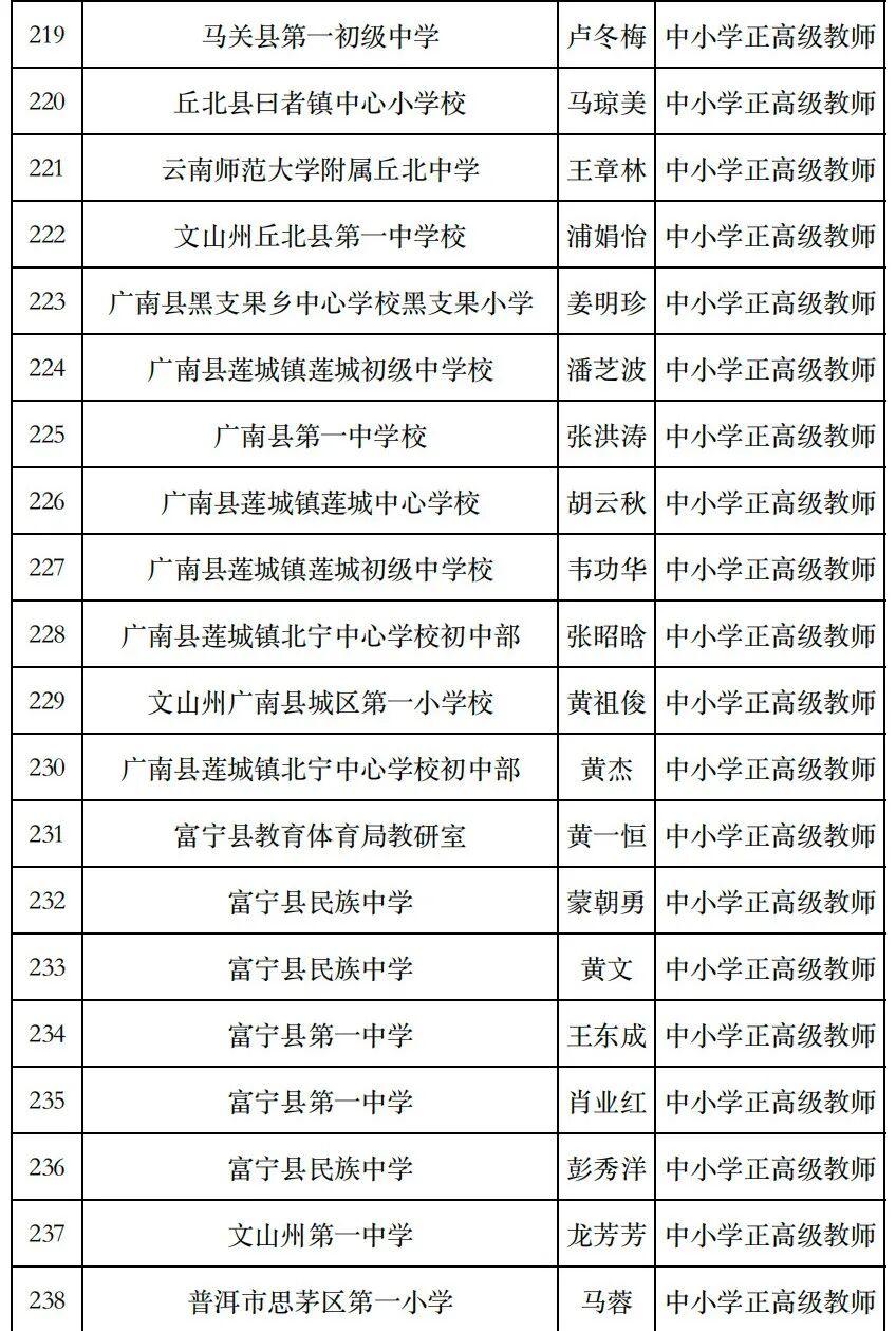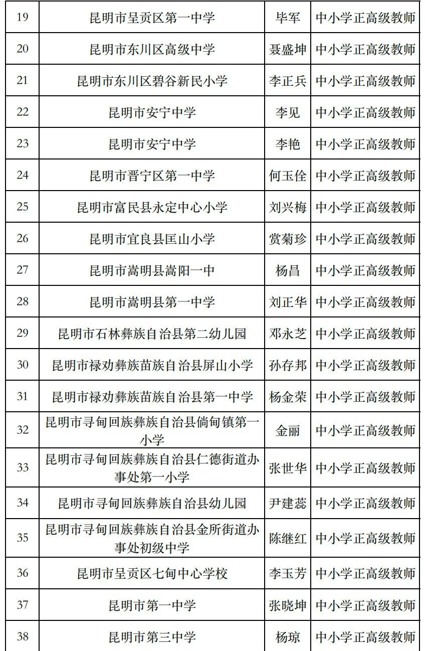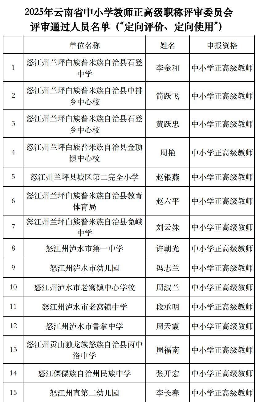 2025年云南省中小学教师正高级职称评审委员会评审通过人员名单公示