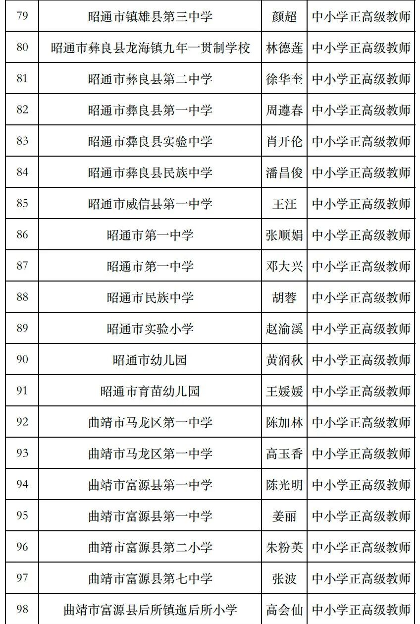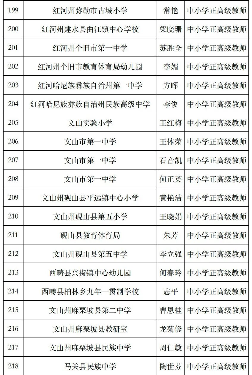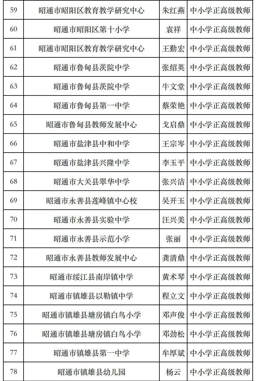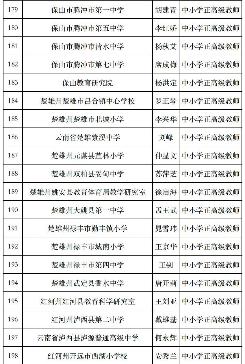 2025年云南省中小学教师正高级职称评审委员会评审通过人员名单公示