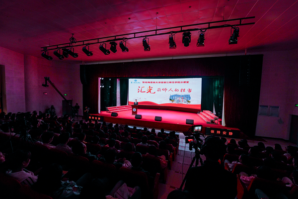 分课堂活动在丽江师范学院带来的原创民族歌剧《桂梅赞》选段《留在大山的人》中拉开序幕。第一篇章“追光——支教者的接力”中,早期支教教师马国发讲述了华坪女高创业维艰时期的感人故事,新时代支教教师刘熙分享了践行教育使命的实践与思考,展现了教育工作者对初心与传承的坚守;第二篇章“沐光——女高人的回响”环节,曾经的女高学生、现任丽江师范学院教师的子梦婷分享了自己从学生到教师这一身份转变过程中的心路历程和学校、老师给予她的深刻影响;刚从华坪女高毕业步入大学的卢荣靖则讲述了带着女高精神开启人生新篇章的憧憬与希望;第三篇章“寻光——研究者的视角”中,秦小健从研究者的角度系统解读了张桂梅教育实践中蕴含的“教育家精神”核心要义与时代价值,为师生提供了深刻的思想启迪;第四篇章“汇光——丽师人的担当”聚焦青年学子的实践行动,学生代表兰宇翔、袁晨益分别结合在丽江市张桂梅师德教育馆的讲解服务和师范生教学实践,分享了将榜样精神转化为具体行动的体会,展现了丽师青年的责任担当。