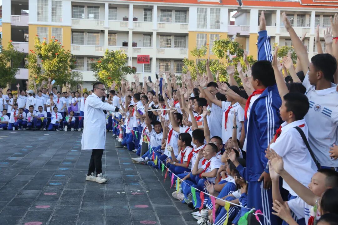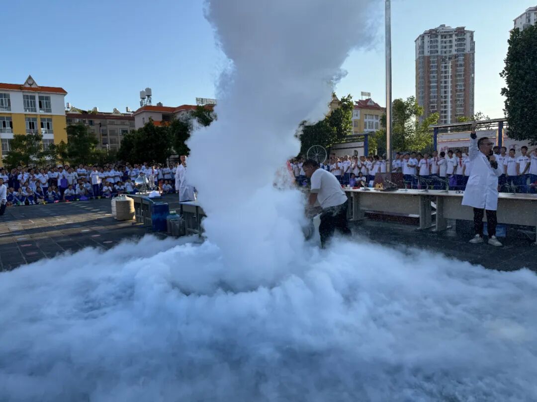 校园内,丰富多彩的科普秀表演引得学生们欢呼雀跃。学生们现场观看环保礼炮、水火箭、极冷火箭、火云掌、气体发动机、太空玫瑰,人工降雨、人造云等科学实验,参与写字机器人、航空模型展等互动展示,共同探索科学的奥秘。
