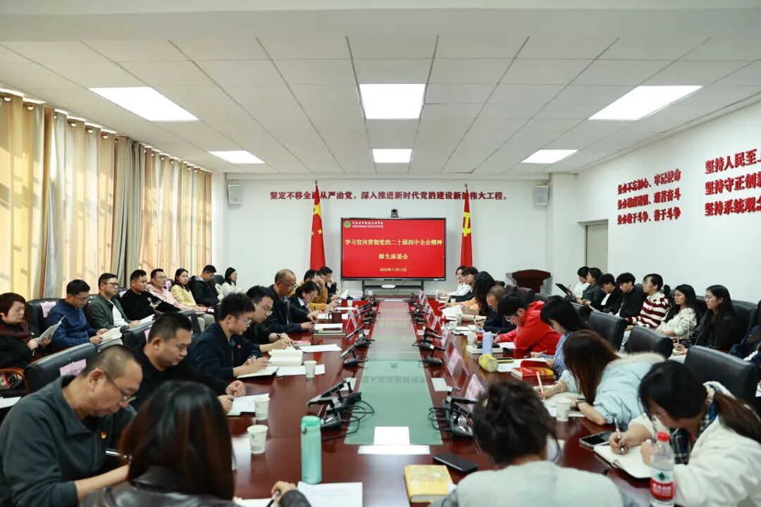 11月12日,云南农业职业技术学院召开学习贯彻党的二十届四中全会精神师生座谈会。各相关职能部门、各二级学院总支负责人,团学干部、青马班学员、教师代表参加会议。师生代表结合所学体会作交流发言,共学全会精神,共话使命担当,切实将全会精神融入学校教育教学全过程。