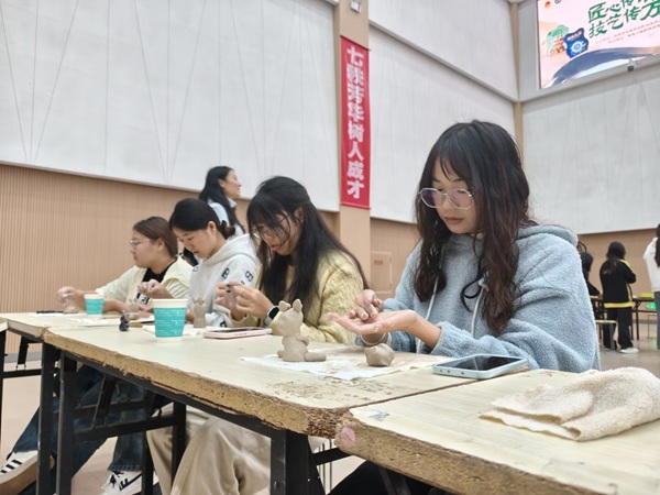 活动现场氛围热烈、文韵绵长。非遗代表性传承人们不仅展示了精湛技艺,更将项目背后的历史文化娓娓道来。扎染台前,素布经巧手捆扎,在染液中浸染出绚丽多彩的纹样,让学生感受传统工艺的色彩智慧与艺术创造力;面塑区里,普通面团在指尖化作栩栩人物,让同学们在揉捏搓捻间感受化俗为雅的创造乐趣;瓦猫制作中,源自民间的屋脊神兽,从塑形到刻画,传递着人们对美好生活的向往与独特的建筑装饰美学;古法制香案前,香材配伍、合香品鉴,引领学生静心感悟传统雅士的生活美学。