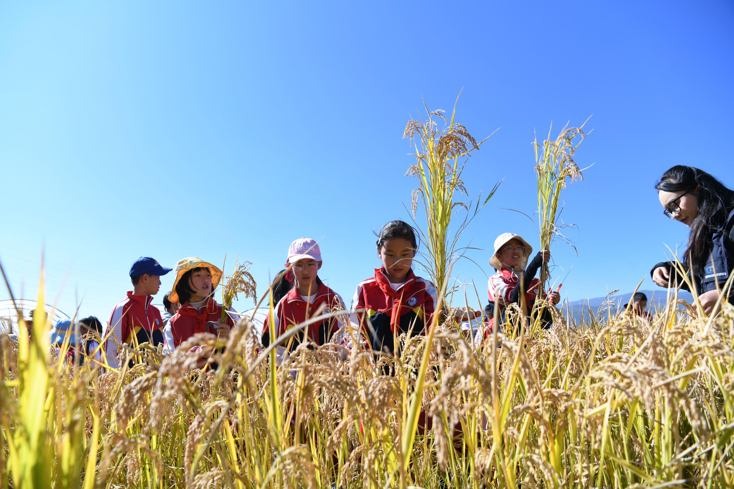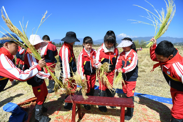 原标题:丽江“小农人”收稻打谷,感受“一粒米的旅程”