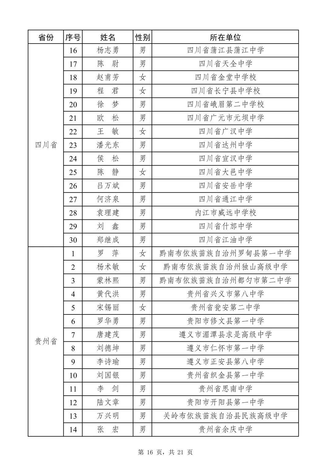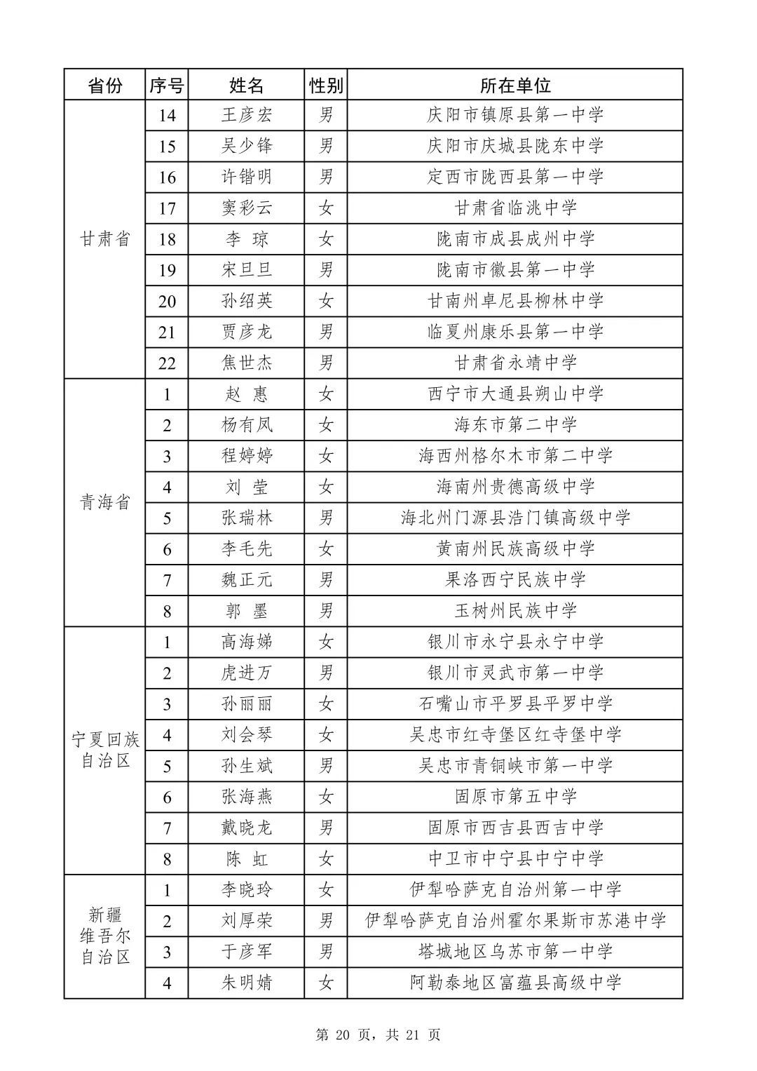 近日,教育部印发《关于公布全国县域普通高中头雁教师岗位计划人选的通知》,公布首批全国县域普通高中头雁教师岗位计划入选教师600人。跟教育小微一起来看名单——