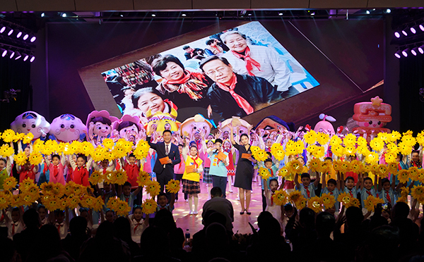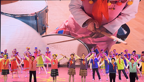 在童声合唱《歌唱祖国》的优美旋律中,活动正式拉开帷幕。由85名少先队员组成的护旗队,护卫着国旗庄严入场,全场起立,高唱国歌、校歌,表达对祖国和母校的深切热爱。