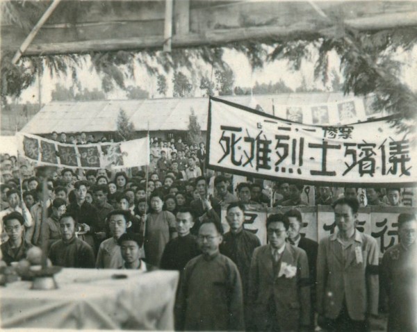 1946年3月17日,“一二·一”四烈士出殡,前排有查良钊、李继侗、闻一多等。