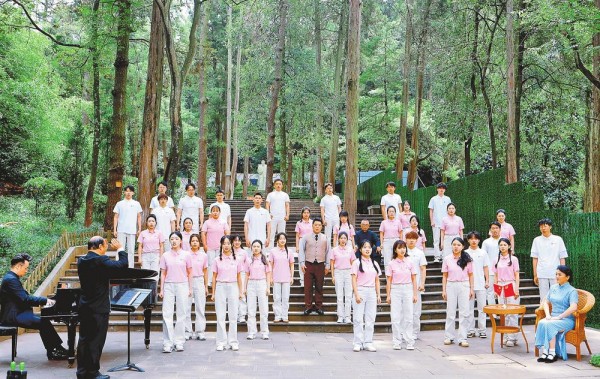 近日,云南艺术学院音乐学院师生来到昆明市西山聂耳墓旁,以一堂特殊的“行走的思政课”形式,演出小歌剧《前进!前进进!》。师生们通过音乐、戏剧与情景交融的表演,生动讲述了《义勇军进行曲》诞生背后的故事。小歌剧《前进!前进进!》从课堂走向实景,是云南艺术学院深化“党建+思政+艺术”育人模式的一次创新实践。学院将思想政治教育与专业艺术教育深度融合,引导师生在艺术创作与表演中坚定理想信念,筑牢思想根基。(记者 高吴双 摄)