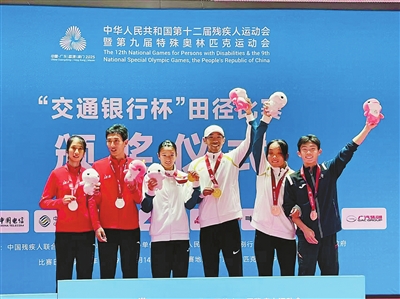 星光不问赶路人,时光不负追梦人。终于,在2025年全国残特奥会的赛场上,所有的等待都有了回响。在女子1500米T12级决赛中,她像一阵疾风卷过终点,4分43秒——全国纪录就此改写;在800米赛场上,她又以2分17秒26再夺一金;在400米决赛中,她顶住压力,再获冠军。站上领奖台时,金牌紧贴胸口,她仰起脸,仿佛能看见多年前那个在乡间小路上跌跌撞撞却始终向前的自己。