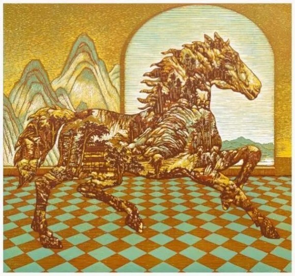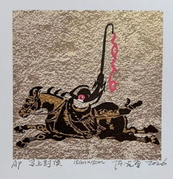 陈槟 《有匹黑马》套色木刻 17×11.5cm