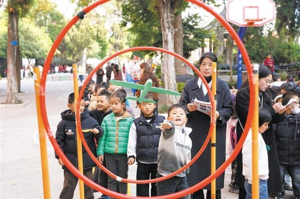 近日,陆良县盘江小学举办第四届校园科技节。科技节以“童心探科创 梦想伴成长”为主题,设置气弓箭射靶、抛石机攻城等20余项趣味科技活动,让同学们在竞技中感受科技的魅力、展示个人的才华,在与“科普大篷车”的互动中点燃科创梦想。(记者 钱宇 邓赛)