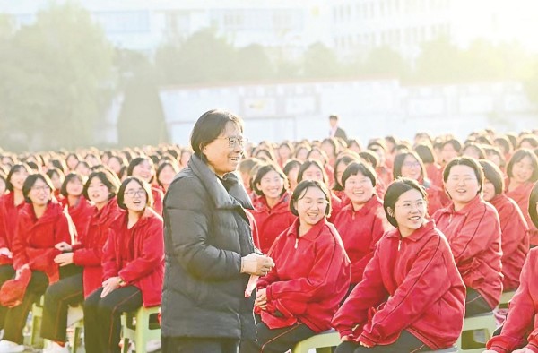 张桂梅老师与学生在一起。(资料图/记者 赵庆祖 摄)