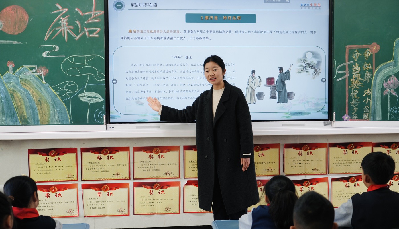 “有德有才,是正品;有德无才,是次品;无德无才,是废品;无德有才,是毒品。”记者了解到,近年来,曲靖市第二小学始终将“清廉育人”作为落实立德树人根本任务的核心工程,深度锚定“扣好人生第一粒扣子”的育人目标,以《新时代小学生廉洁教育读本》为重要载体,将清廉建设全方位融入育人全过程。在具体教学实践中紧扣小学生认知特点,把读本中的廉洁故事、典型案例转化为可参与、可感知的活动场景。通过“读本共读会”“清廉故事我来讲”“廉洁关键词大梳理”等形式,让队员们自主诵读、分享感悟,将“诚实、节俭、公正、自律”等抽象理念,转化为“不抄袭作业、公平分配任务、节约粮食水电”等贴近生活的具体行为指引,让廉洁教育从课堂延伸到课间、从知识传递变为行为自觉,让“崇廉尚洁”的种子在童心深处生根发芽。