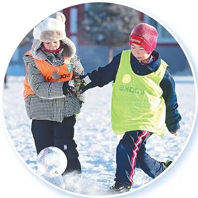 “雪假”期间,内蒙古呼伦贝尔额尔古纳市学生参加雪地足球活动/图源:人民日报
