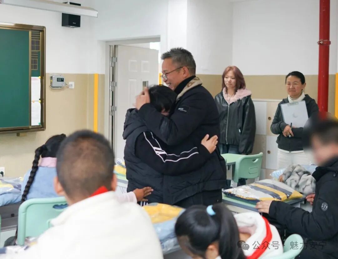 贾老师走进每一间教室,亲手将准备好的新衣送到孩子们手中,并鼓励他们快乐健康成长。接过衣服的孩子们格外高兴,有的连声道谢,有的开心地蹦跳起来,还有的孩子紧紧抱住贾老师,久久不愿松手。