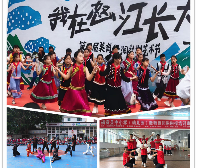期间,支教师生注重“浸润”与“造血”相结合,将高校育人使命与社会服务担当相结合,不仅承担日常音体美课程教学8.24万课时,更着力培育“五育并举”的校园文化。协助当地学校组建陀螺、葫芦丝、舞蹈等社团109个,开展社团活动4656次;指导共建10个“名师工作室”,带动本地教师专业能力提升;积极策划校园文化节、体育竞赛等168场,将中华优秀传统文化、民族特色艺术与现代教育理念有机融合,使校园成为陶冶情操、强健体魄、凝聚认同的生动课堂,为推进乡村义务教育优质均衡发展注入鲜活动力。