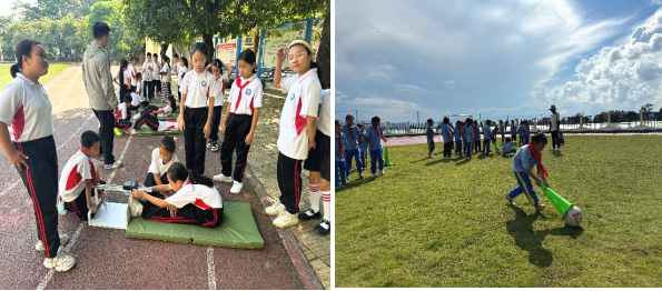本期浸润行动推动藤球项目在瑞丽中小学系统落地,为两所小学和一所中学提供专业训练课程,培养了一批青少年藤球新生力量。首次将民族健身操纳入课后服务课程并创编多套示范操,为民族小学创编民族健身操一套,为姐相中心小学、姐勒中心小学创编啦啦操两套。向瑞丽市22所驻点中小学捐赠了价值5万余元的体育、美育教学用具,有效缓解了学校硬件不足的问题。