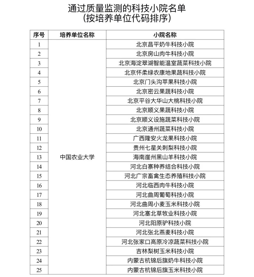 近日,《教育部办公厅 农业农村部办公厅 中国科协办公厅关于公布通过2025年质量监测的农业专业学位研究生培养单位和科技小院名单的通知》发布。