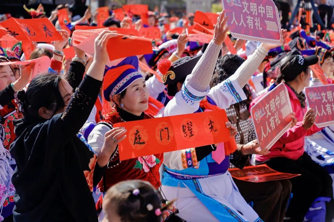 2月8日,2026年全国“我们的节日・春节”主题文化活动在云南省大理白族自治州剑川县启幕。剑阳楼下,这场全国首届楹联“村”晚,以“联墨”为媒,贯通古今,传承文明,为传统节日注入鲜活的时代气息。