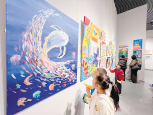 看画展。记者 蔡晓磊 摄