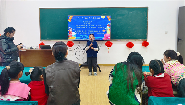 “童声诵经典”环节中,孩子们化身小小诗人,声情并茂地演绎元宵主题经典诗词。李怡然朗诵《正月十五夜》,李怡宁吟诵《生查子·元夕》,段涵露与段霖锋共同演绎《十五夜观灯》。朗朗童声传递着元宵韵味,将古诗词中描绘的佳节盛景与细腻情怀展现得淋漓尽致,让在场人员在诗意氛围中接受传统文化熏陶,传承中华文脉。