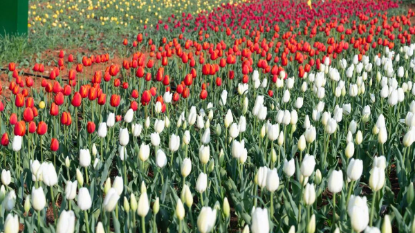 云南网讯(记者 赵津津 通讯员 张敏 王安理)近日,云南农业职业技术学院小哨校区一片占地约两亩的郁金香花海迎来盛花期。包含11个品种、共计约5万株郁金香集中绽放,粉白相间、明黄夺目,不仅扮靓春日校园,也成为该校深化产教融合、创新实践育人的一次生动探索。