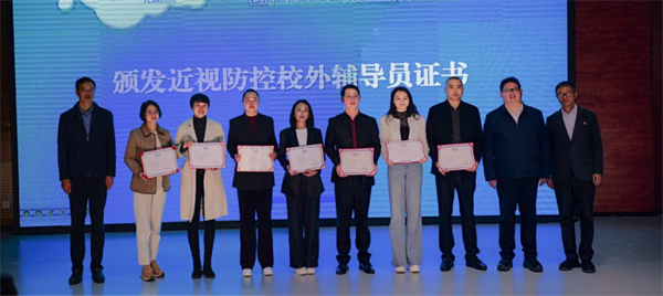 现场还发布了家校生协同护眼倡议书,昆明市呈贡区师大附属七彩云南小学与昆明市妇幼保健院签订近视防控共建协议,并向校级家委会代表颁发“校外护眼辅导员”证书,这标志着“教育部门主导、学校主体实施、专业机构支持、家庭社会参与”的防控格局正式形成。