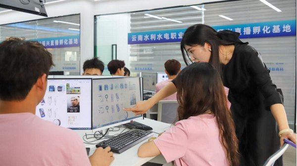 校内,学海、拱坝、土石坝、三眼井等景观错落有致,实习实训设施与水文化景观融为一体,让学生在沉浸式场景中精进技能。2025年11月,“昆明市数字新经济实用型人才培养基地”落地蓝龙潭校区,作为全市首个由学校、企业、社会组织三方共建的数字新经济人才孵化基地,为学生打开了通向新兴产业的窗口。