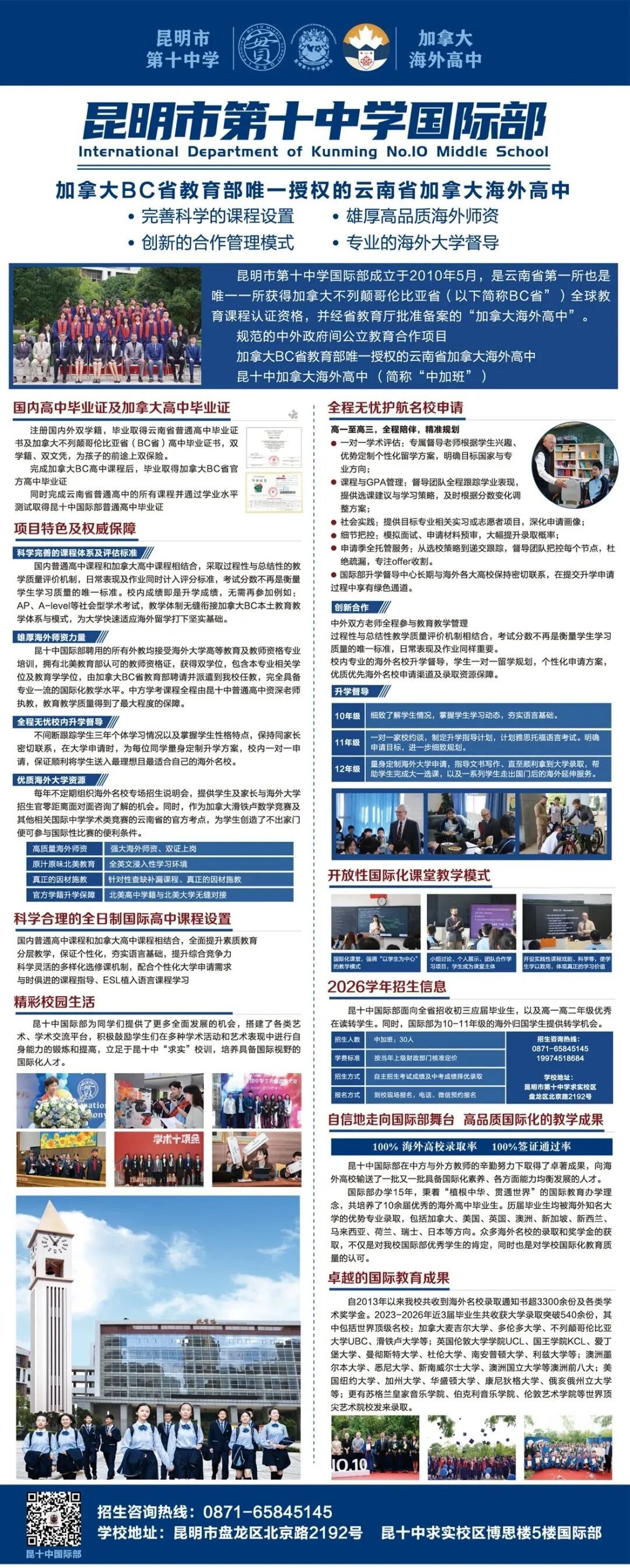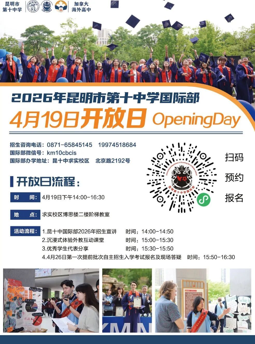 昆十中国际部4月19日校园开放日,邀约全城家长与学子!