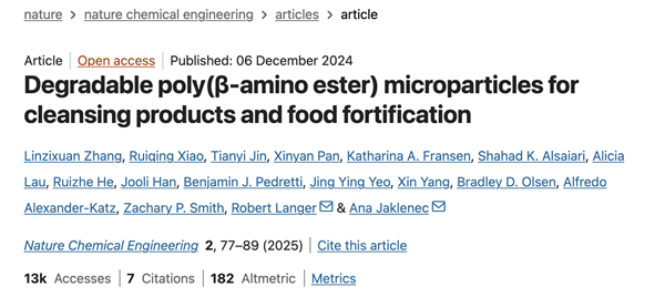 在MIT的五年博士生涯中,张林子铉聚焦于一个核心问题:如何通过新型材料的研究与应用,将实验室创新转化为能够真正服务社会的解决方案。她与团队开发了一类可降解的聚合物微粒——聚(β-氨基酯)(PAE)。这类材料能实现对多种微量营养素(包括维生素A、维生素D、维生素E、维生素C、锌和铁)的稳定化与控释,使其在烹饪和储存中保持活性,并能在人体内可控释放,从而提升吸收效果。该技术为应对“隐性饥饿”(hidden hunger)——即热量摄入充足但缺乏必需微量营养素所造成的营养不良问题提供了新的可能。相关研究发表于国际顶级期刊《Nature Chemical Engineering》。